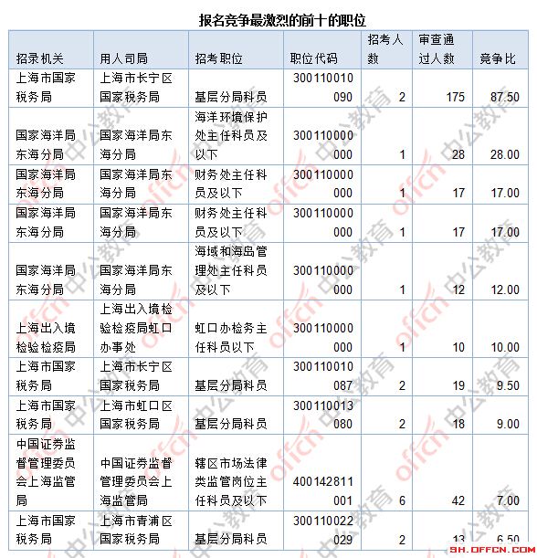 [31日10時(shí)]2018國(guó)考報(bào)名數(shù)據(jù):上海737人過(guò)審 最熱競(jìng)爭(zhēng)比87.5:1