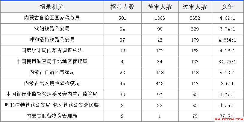 [31日18時]2018國考報名數據:內蒙古3843人過審 最熱職位競爭129:1
