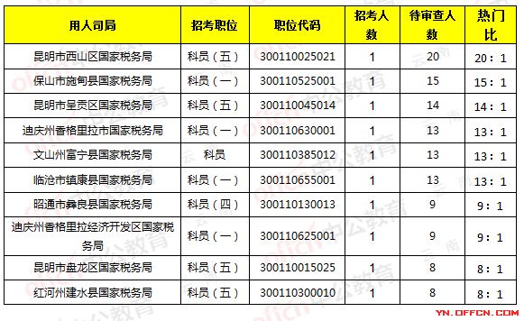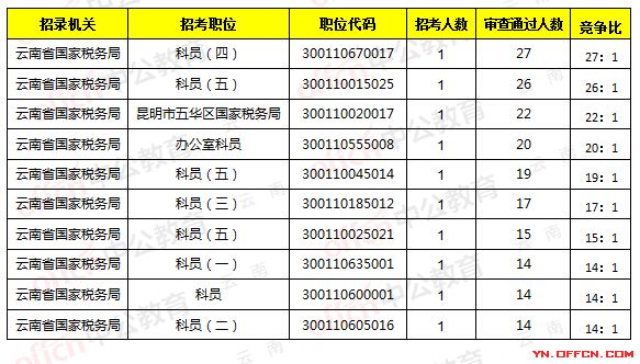 云南省國稅局職位報名人數分析