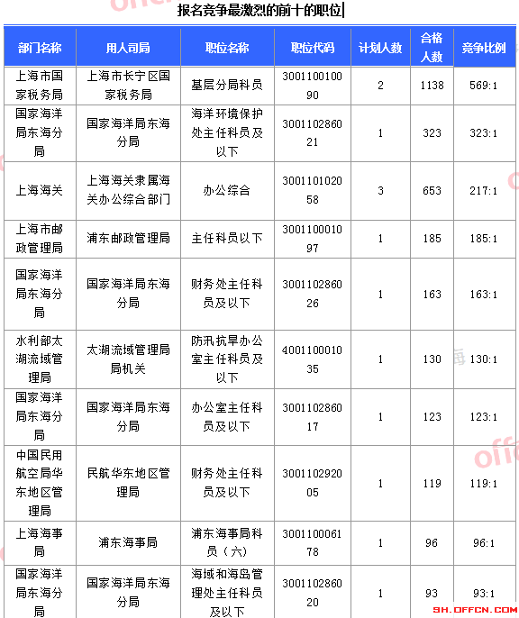 [4日9時]2018國考報名數據:上海10537人過審 最熱職位569:1