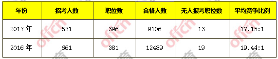 截至11月4日16時,據中公網校統計,國考職位中工作地點在山西的職位通過審核總人數為9106 人,和昨天相比增加了2410 人,與去年同期相比合格人數減少了3383人,截止目前共有13個職位無人報考,平均競爭比例為17.15:1,和去年同期相比下降了了2.29%。