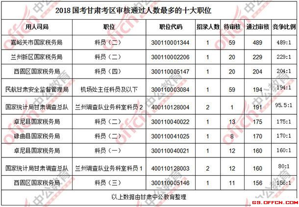 報名通過審核人數前十的職位主要集中在嘉峪關市國家稅務局、蘭州新區國家稅務局、西固區國家稅務局等部門,具體信息如下: