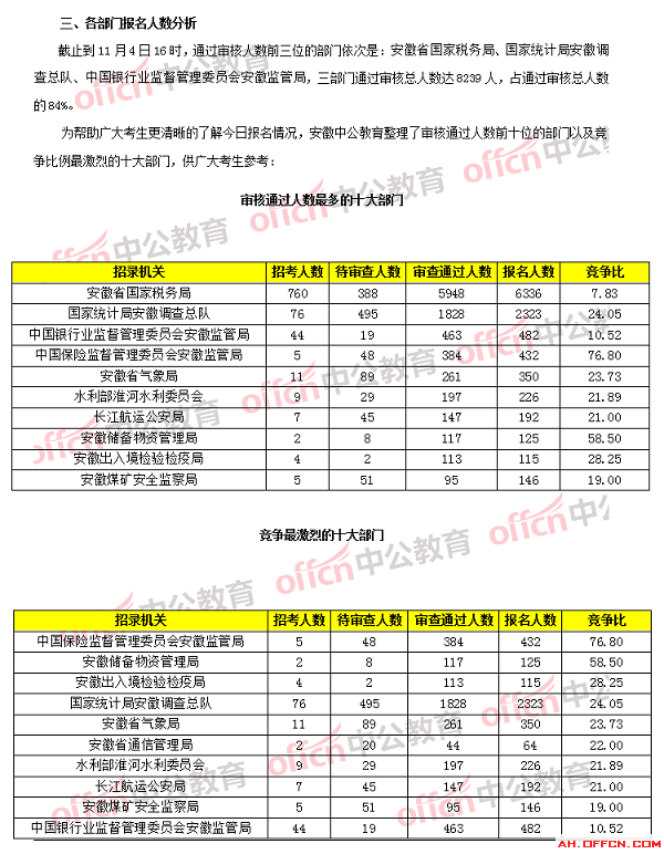 【11月4日16時(shí)】2018國考報(bào)名人數(shù)統(tǒng)計(jì):安徽9787人通過審核,最熱職位122:1