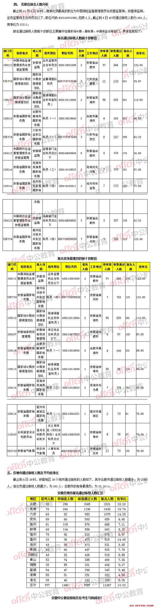 【11月4日16時】2018國考報名人數統計:安徽9787人通過審核,最熱職位122:1