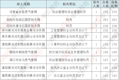 截止到11月4日16時,競爭比例的職位為河南省長垣縣氣象局的綜合管理科綜合管理科員一職位,招錄1人,截止到11月4日16時通過人數為270人,仍有10個人還在審核中。