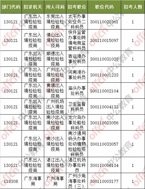 截止到4日16時,工作地點在廣東的職位共有95個無人報考,占全部職位的7.2%。下面是無人報考職位一覽表,中公網校專家建議廣大考生多關注一些較冷職位,避免激烈競爭,結合自身條件,找到屬于自己的職位。