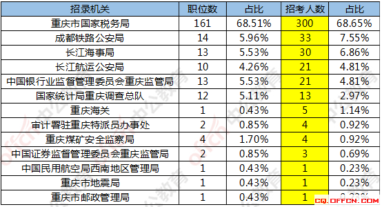 為幫助廣大考生更清晰的了解今日報名情況,中公網(wǎng)校整理了重慶市招錄機關的招錄情況,供廣大考生參考: