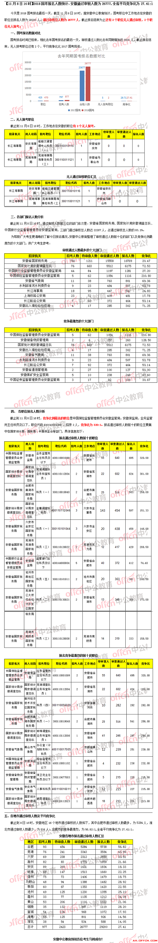 【11月8日16時(shí)】2018國考報(bào)名人數(shù)統(tǒng)計(jì):安徽通過審核人數(shù)為26777,全省平均競爭比為27.41:1