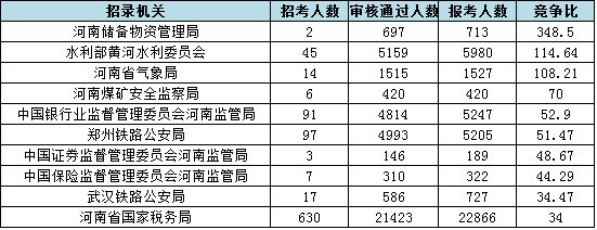 為幫助廣大考生更清晰的了解今日報名情況,中公網校整理了審核通過人數前十位的部門以及競爭比例最激烈的十個部門,供廣大考生參考:
