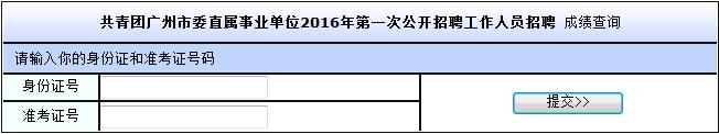 2016廣東廣州共青團市委直屬事業單位招聘考試筆試成績查詢入口(第一次)