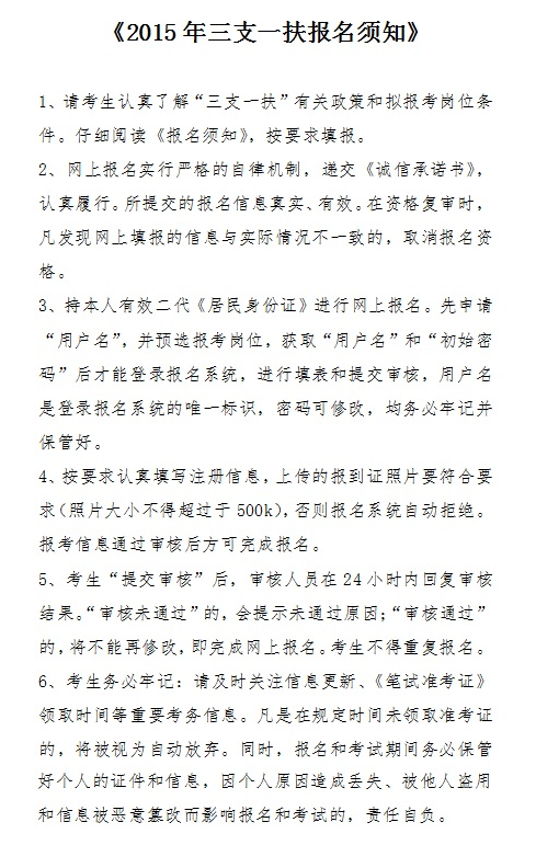 2015河北唐山三支一扶考試報名須知
