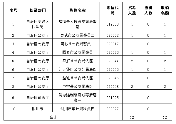 | 4 | 自治區公安廳 | 海原縣公安局法醫 | 020049 | 3 | 2 | 2 | 1 |